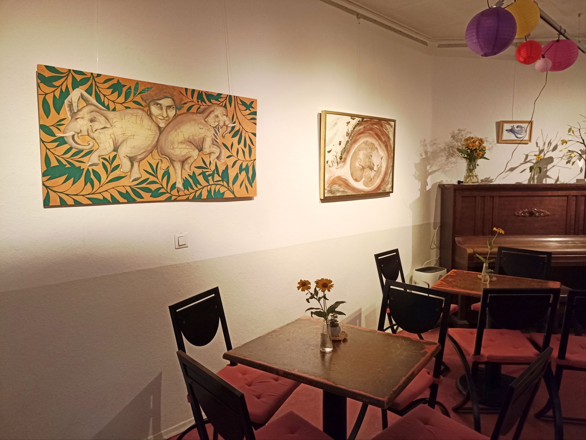 In meinen Bildern öffne ich Räume, in denen sich alle Wesen mit all ihren Wunden und Wundern entfalten dürfen, in denen wir unsere Verletzlichkeit mit Stolz tragen, in denen Verbundenheit nicht im Widerspruch zu räumlicher Trennung steht und in denen aus Schwermut und Melancholie ein wunderschöner Rhythmus entsteht, der zum Tanz einlädt.
