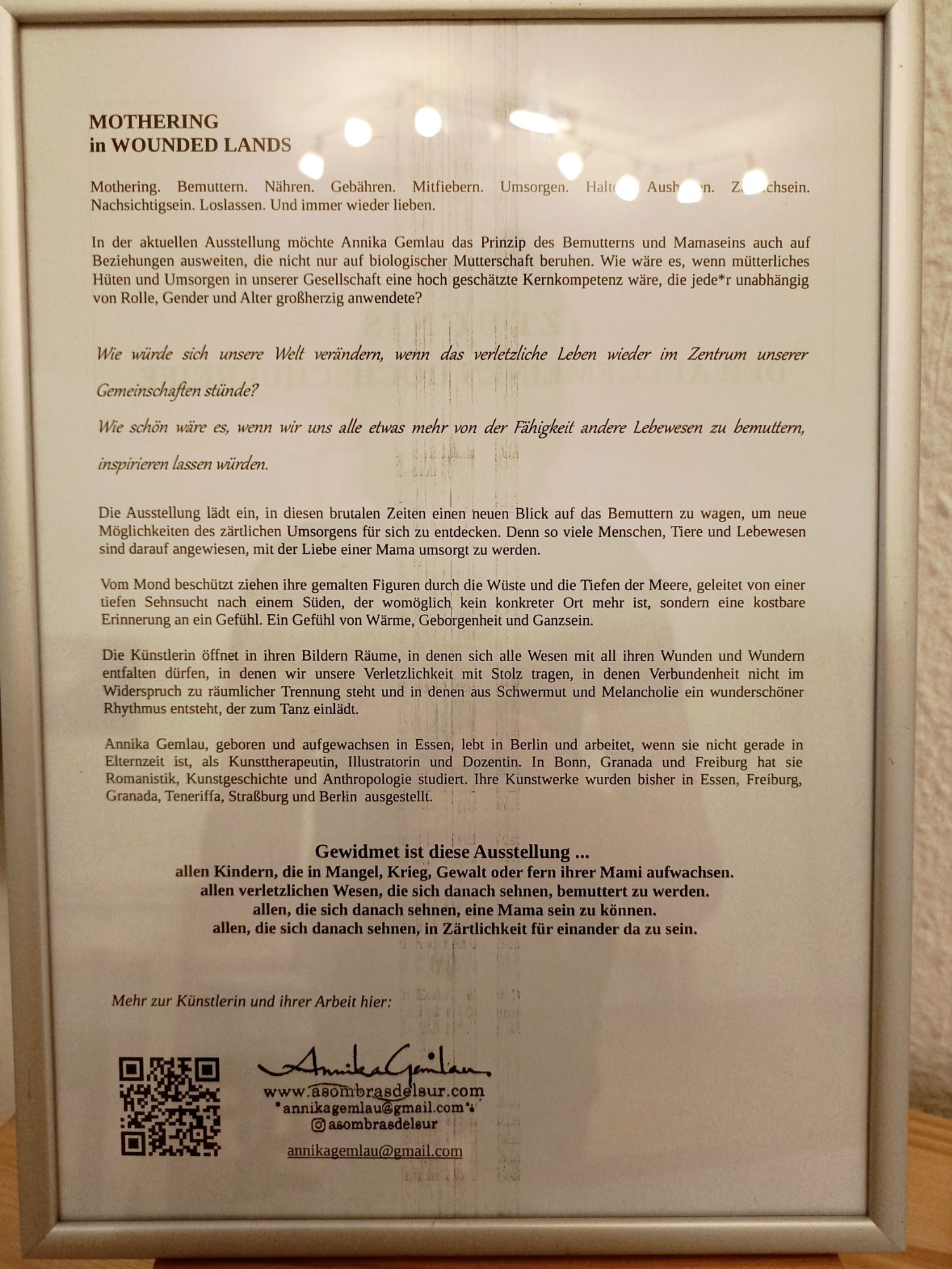 Die Ausstellung lädt ein, in diesen brutalen Zeiten einen neuen Blick auf das Bemuttern zu wagen, um neue Möglichkeiten des zärtlichen Umsorgens für sich zu entdecken. Denn so viele Menschen, Tiere und Lebewesen sind darauf angewiesen, mit der Liebe einer Mama umsorgt zu werden.