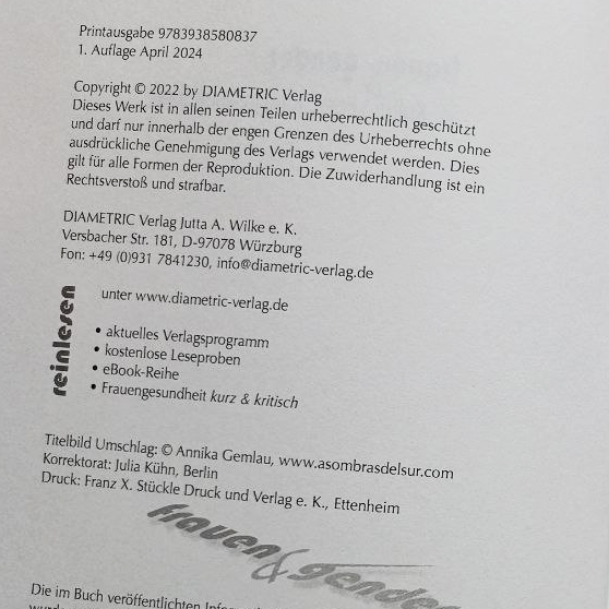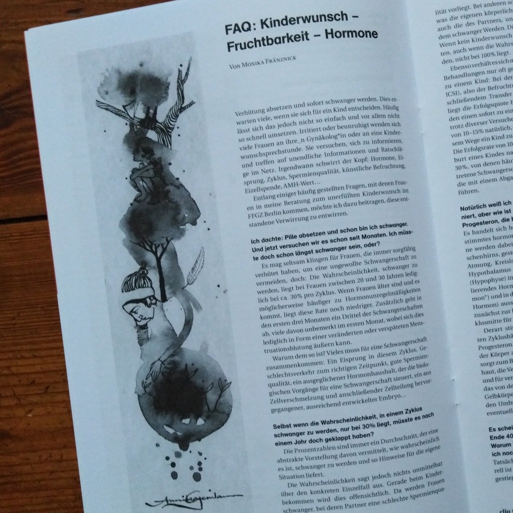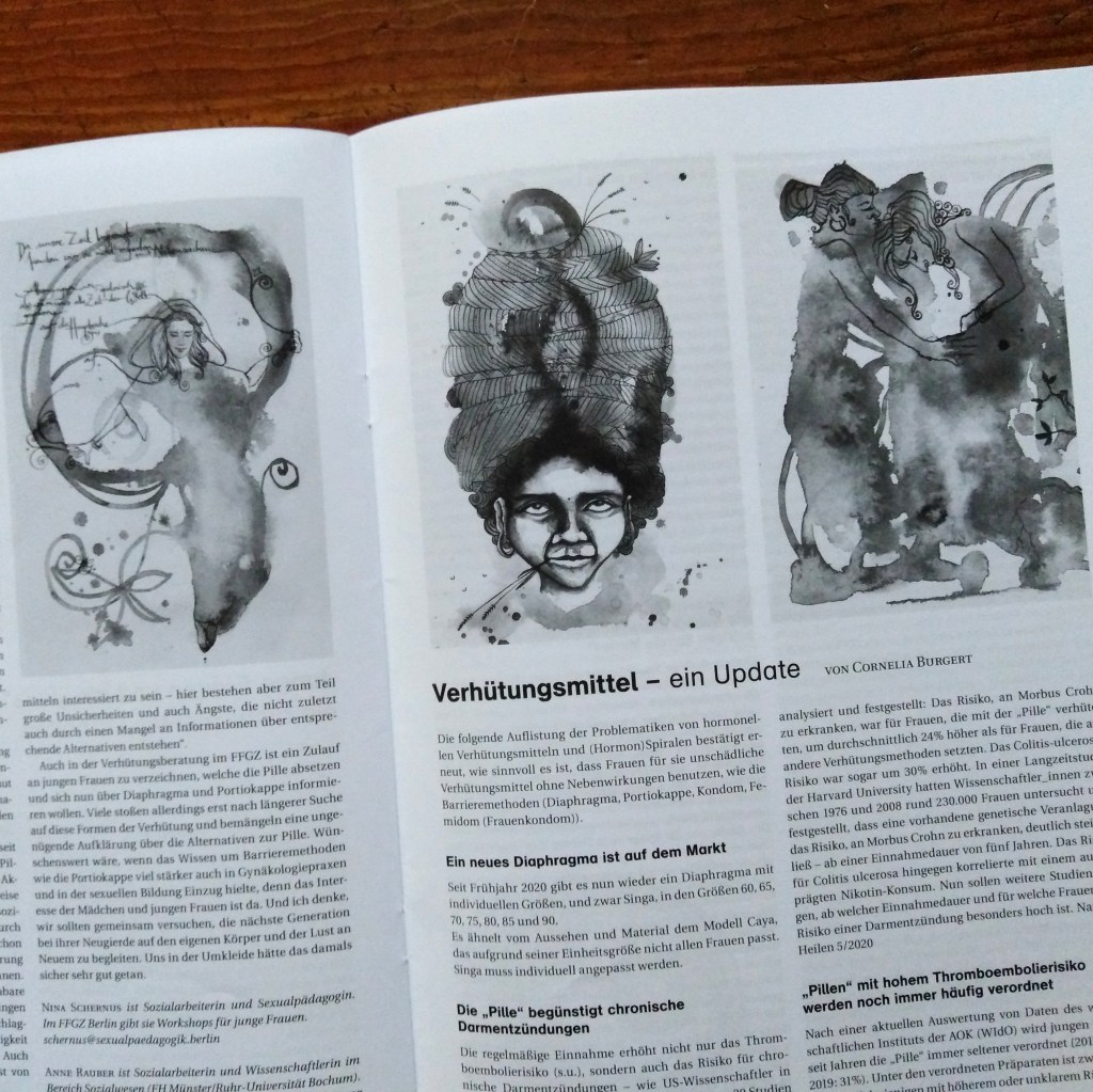 As a result of friendship, neighbourhood and shared feminist ideas and activities, Harita first asked me to design the cover of her publication. She is not only telling the story of a self-empowerment from sexual abuse and the damages of sexualized violence to the achievement of healthy body relationships, but also she is offering lots of different inspirations and strategies to overcome the often negatively influenced connection to our bodies and sexual partners.