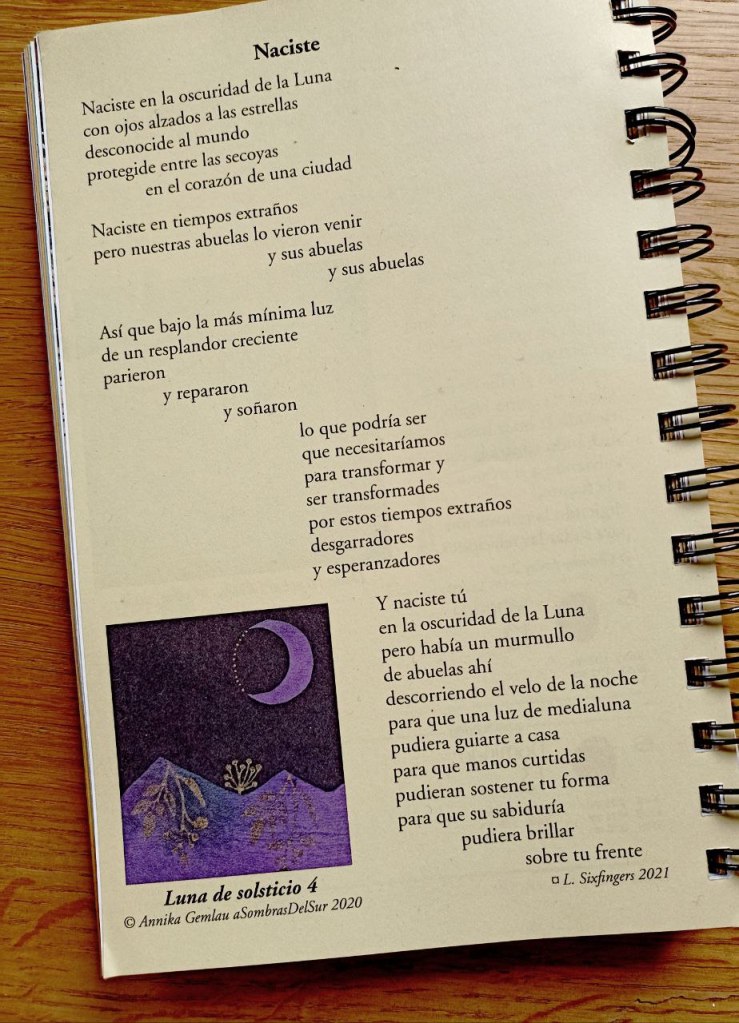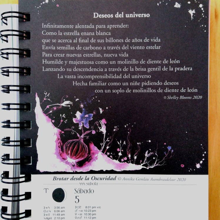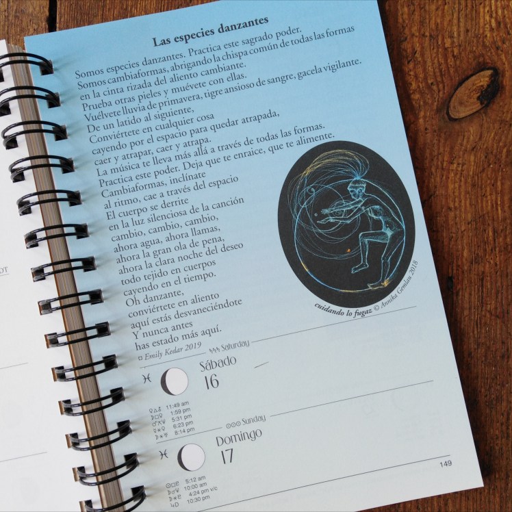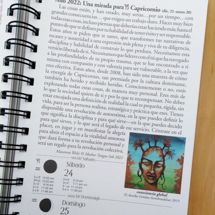 Coillustration der We’Moon -Kalender von 2021, 2022, 2023 und 2024, dem feministischen und antirassistischen Planer und Mondkalender – verfügbar auf Englisch und Spanisch